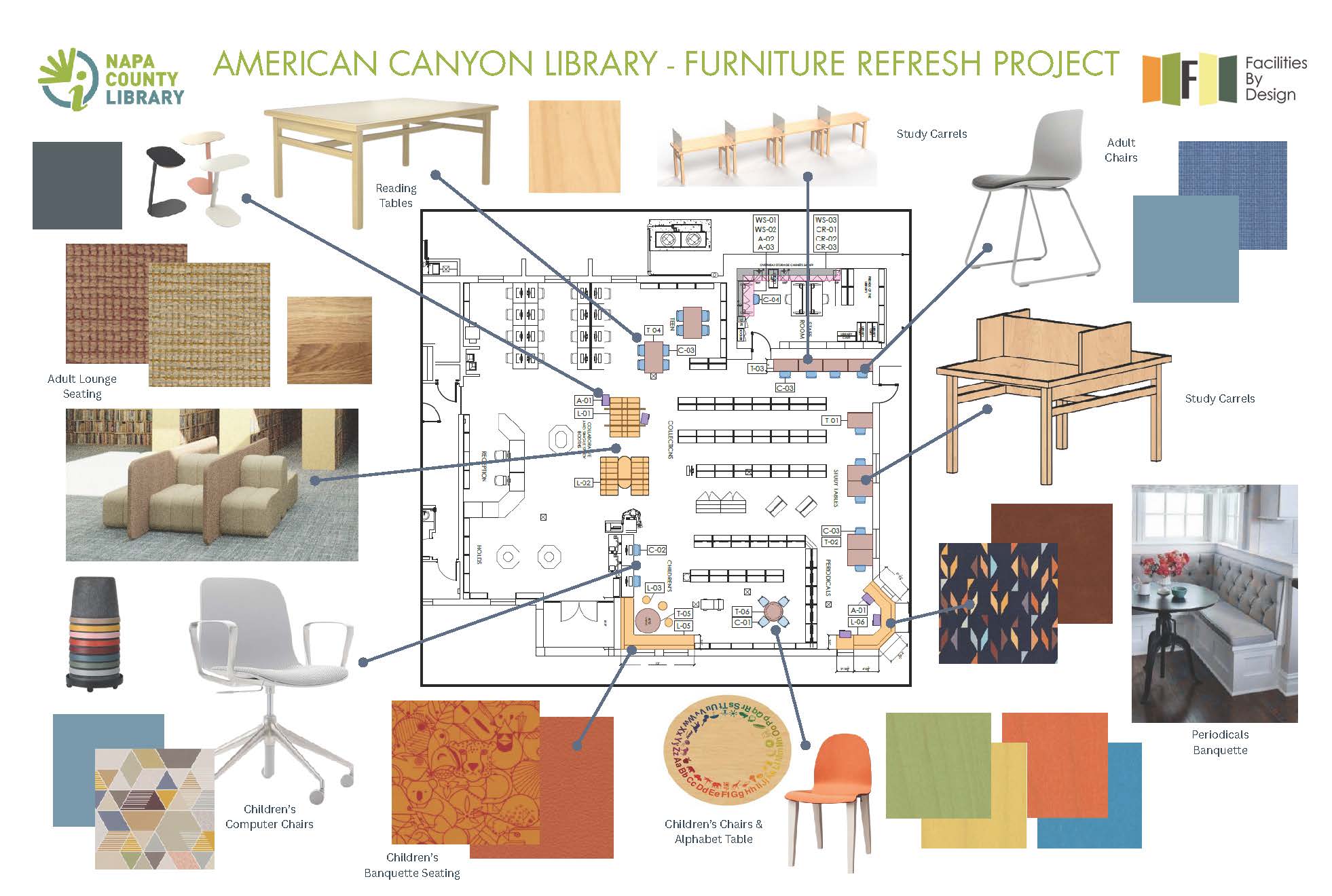Since moving to this location in 2012, there have been no major improvements to the building and interior maintenance is needed. The American Canyon Library Remodel will update the facility's interior furnishings, flooring, paint, bathroom, doors, and exterior signage.